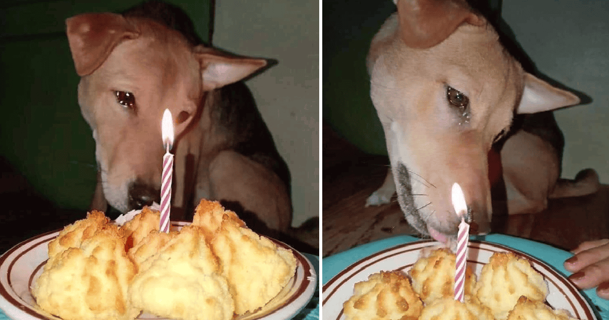 Happy birthday to her! A tear fell on the dog’s face as he finally received a birthday cake after 15 years.