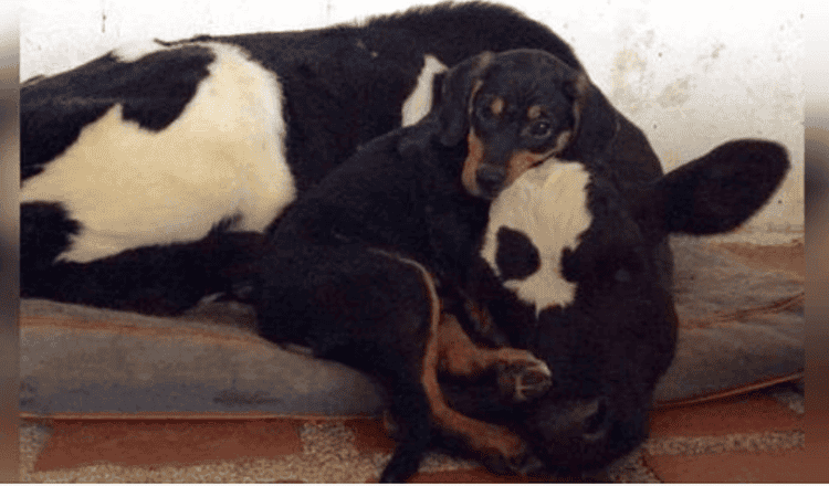 Puppy Found Abandoned In The Woods becomes Best Friends With A Rescued Cow
