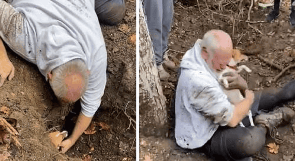 Man sheds tears of joy after finding his beloved dog